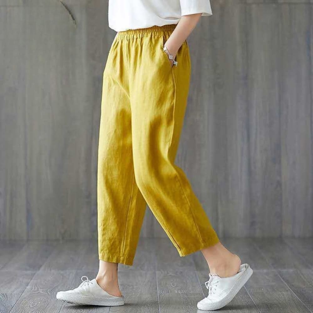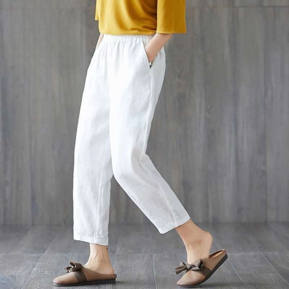 The Women’s Cotton and Linen Casual Pants are a must-have piece for a casual and trendy look. The loose fit and soft, lightweight fabric give you freedom of movement and a feeling of well-being throughout the day.